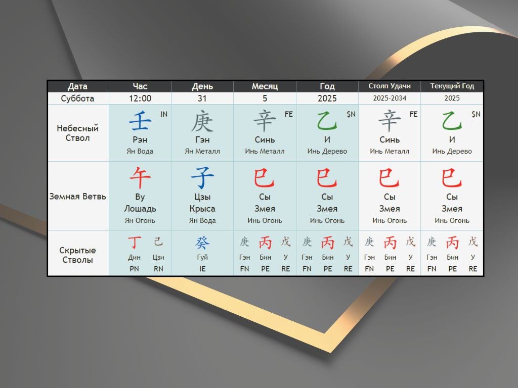 - Столп Года: Отражает расширенную семью, наследственные влияния и ваши внешние социальные связи (как вас воспринимает общество).